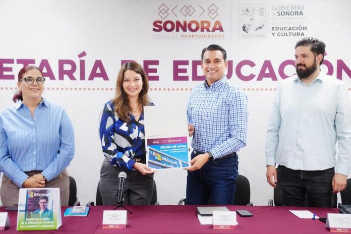 Hermosillo, Sonora.- El Gobierno de Sonora tendrá la oferta de capacitación digital más grande en la historia de México, con 350 mil cursos de IA Generativa de Microsoft Elevate, como resultado de la gestión realizada a través de la Secretaría de Educación y Cultura (SEC) para fortalecer las competencias tecnológicas de docentes, alumnos, personal administrativo y público en general.