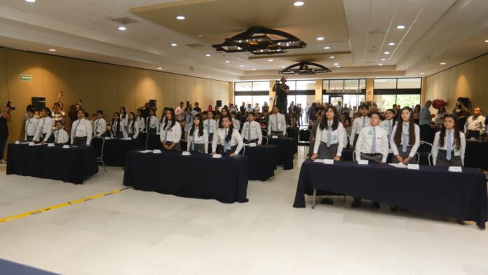 Hermosillo, Sonora- En el marco de la sesión de la Legislatura Infantil 2026, ejercicio que el Congreso del Estado de Sonora realiza anualmente en coordinación con el Instituto Estatal Electoral (IEE Sonora), niñas y niños de educación básica llevaron a cabo la toma de protesta e instalación formal, donde aprobaron un acuerdo que exhorta a las autoridades educativas, madres y padres de familia, así como a la sociedad en general, a implementar acciones que garanticen el derecho de la niñez a una alimentación saludable.