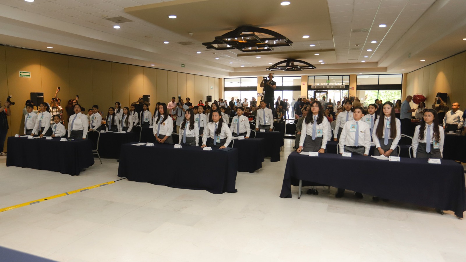 En su mensaje, Adolfo Salazar Razo, secretario de Gobierno, llamó a las niñas y los niños a continuar su preparación para convertirse en futuras y futuros líderes, así como a participar activamente en la toma de decisiones de las políticas públicas de la entidad.