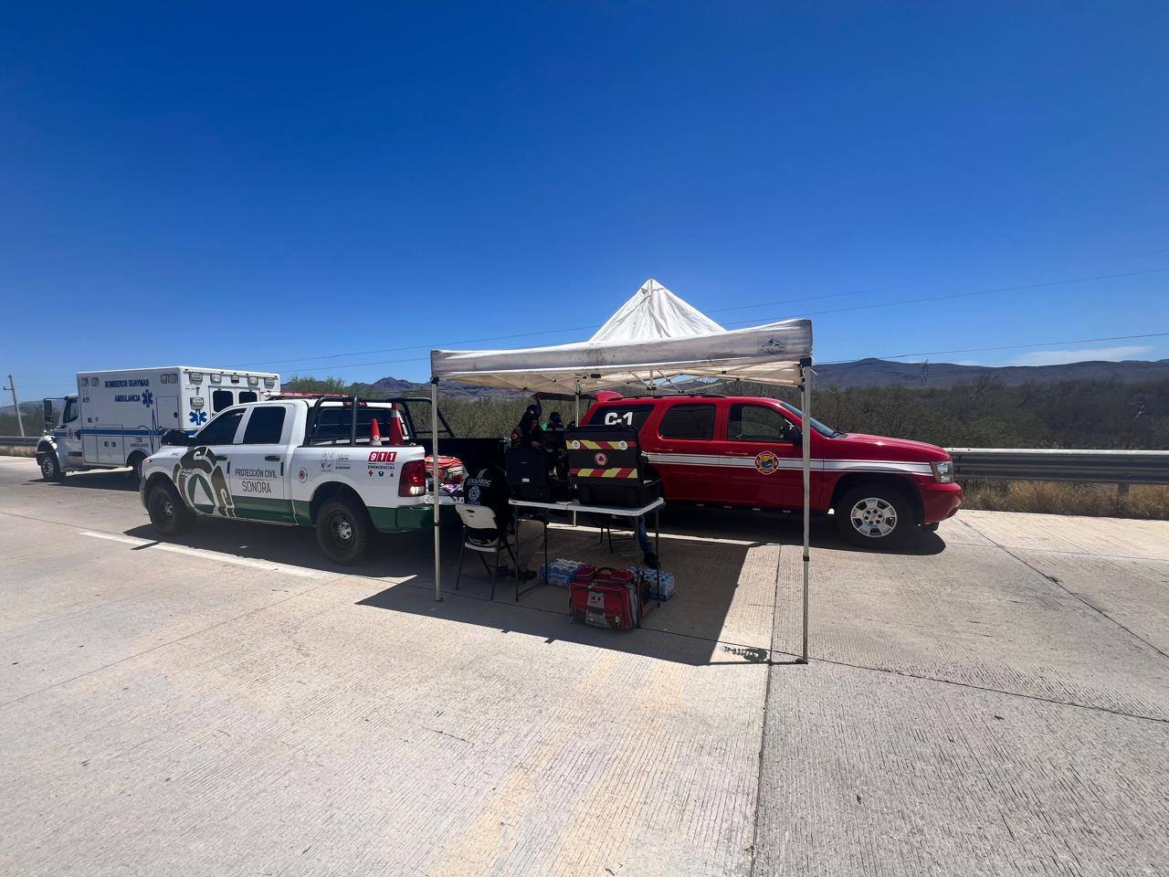 De acuerdo con la información disponible hasta el momento, la circulación en ambos sentidos, de Guaymas a Hermosillo y de Hermosillo a Guaymas, se mantiene por un solo carril, por lo que se pide a la ciudadanía transitar con extrema precaución y atender en todo momento las indicaciones del personal de Protección Civil.