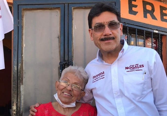 NOGALES, Son.- Vecinos de Colinas del Sol recibieron con entusiasmo al candidato de Morena a la Presidencia Municipal, Juan Francisco Gim Nogales, a quien le hicieron varios planteamiento luego que llegue al triunfo el próximo 6 de junio.