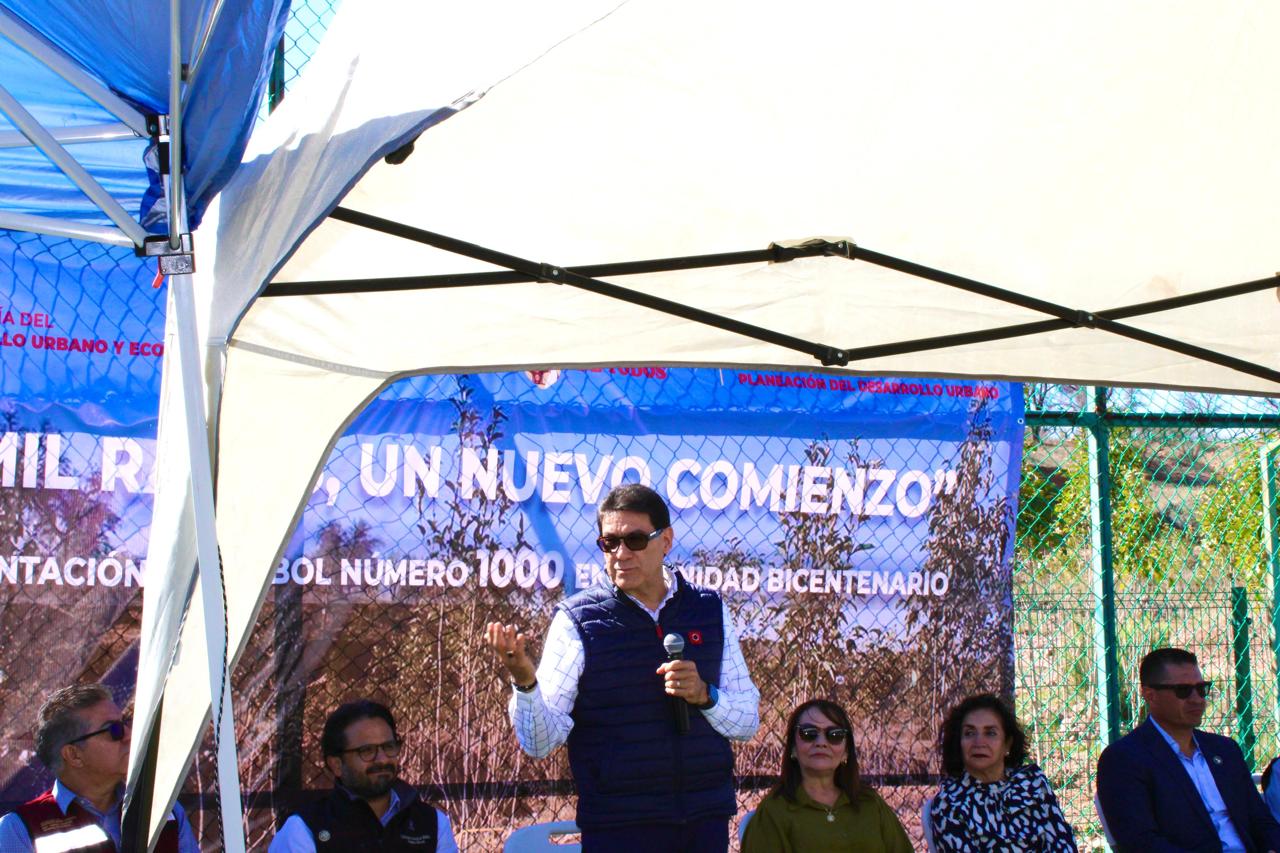 “Estamos sembrando el árbol número mil en este espacio deportivo y de esparcimiento, al que acuden diariamente miles de personas. Esperamos que, en el futuro, esto se convierta en un bosque urbano que fortalezca el entorno ecológico y favorezca la captación de agua de lluvia que tanta falta hace a nuestra población”, expresó el presidente municipal.