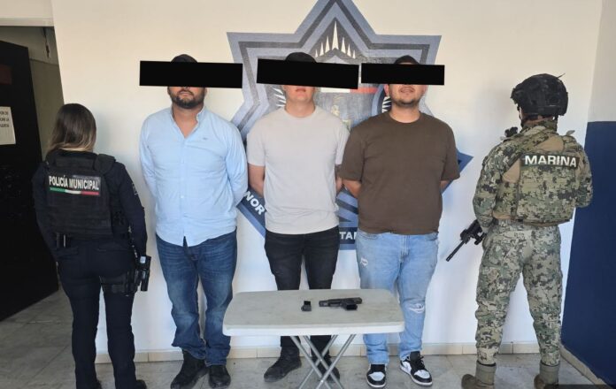 Tras un reporte de detonaciones de arma de fuego, oficiales detuvieron a Gilberto “N.”, de 29 años; Fernando “N.”, de 27 años; y Manuel “N.”, de 28 años de edad.