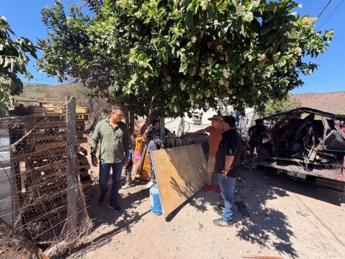 Guaymas, Sonora, .- Por instrucciones de la presidenta municipal, doctora Karla Córdova González, el presidente de DIF Guaymas, Jesús Córdova González, acudió a la vivienda que resultó afectada por un incendio ocurrido en días pasados en la colonia Fátima, acompañado por personal de DIF y por el director de Desarrollo Social, Alejandro Ruiz, para hacer entrega de diversos apoyos a la familia.