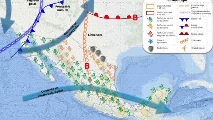 Durante la tarde noche de hoy, el frente frío (núm. 39) ingresará al estado de Sonora impulsando inestabilidad suficiente para la generación de tormentas aisladas durante el fin de semana en gran parte del territorio. A su vez, estás condiciones se mantendrán los próximos 3 días posteriores al ingreso con efectos como un descenso marcado en las temperaturas, rachas de viento y posible caída de granizo en el oriente de la entidad.