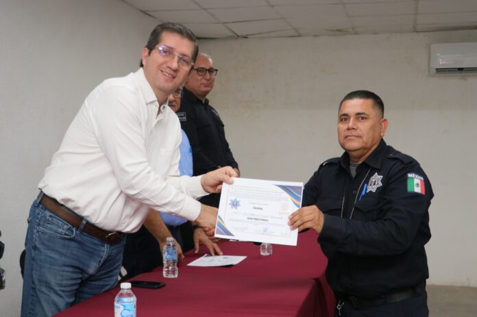 Roberto Antonio Fuentes Domínguez, comisario de Seguridad Pública, agradeció al Presidente Municipal su apoyo constante hacia los elementos preventivos, e igual a nombre de los beneficiados Dolores Sierra, quien además resaltó el entusiasmo y compromiso de seguir creciendo laboralmente con ética y responsabilidad.
