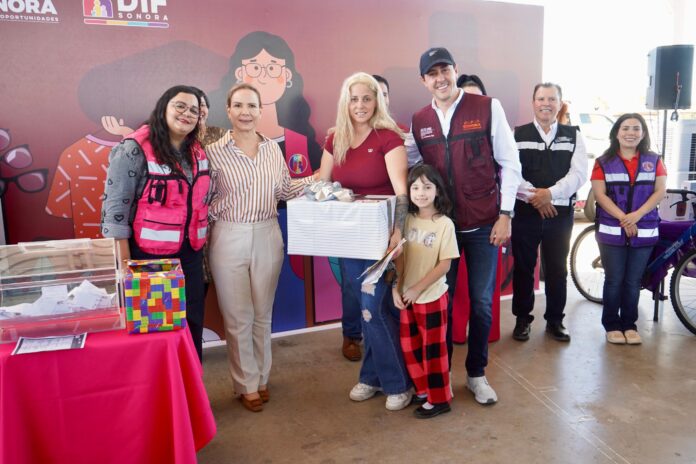 La presidenta honoraria del Sistema DIF Sonora, Rocío Chávez Murillo, estuvo presente durante la jornada, donde convivió con las familias asistentes, recorrió los módulos de atención y reiteró la importancia de trabajar en equipo para acercar apoyos que contribuyan al bienestar de las comunidades.