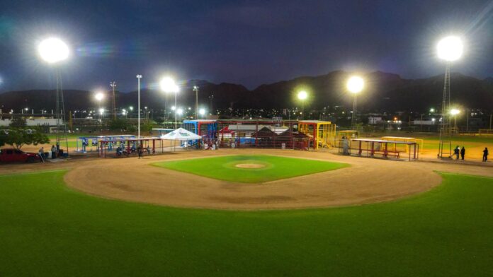 Guaymas, Sonora, 08 de julio de 2025.- Como parte del compromiso de la alcaldesa Karla Córdova con el fomento al deporte especialmente en niños y jóvenes guaymenses, el Ayuntamiento de Guaymas rehabilitó de manera integral los campos de béisbol en la Unidad Deportiva Municipal para brindar instalaciones dignas y seguras para la realización del Torneo Nacional de Ligas Pequeñas categoría 11-12, que arranca hoy en nuestra ciudad.
