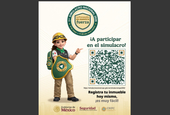 Los interesados en participar en el Primer Simulacro Nacional del 6 de mayo de 2026 deben registrarse en línea, a través de la plataforma oficial del Gobierno de México.