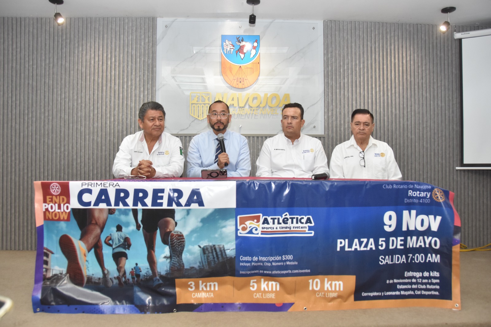 Navojoa, Sonora, 30 de octubre 2025.- El 9 de noviembre próximo tendrá lugar la Primera Carrera “End Polio Now”, que abarcará rutas de caminata y corrida en 3, 5 y 10 kilómetros, con una bolsa global de premios de 86 mil pesos, evento impulsado por el Club Rotario de Navojoa, bajo el respaldo del gobierno del alcalde Jorge Alberto Elías Retes.