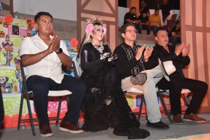 “Qué mejor que estar aquí, para vestirnos y representar nuestra cultura tradicional de honra a nuestros fieles difuntos, un abrazo hasta el cielo a todos los seres queridos”, expresó en presencia de regidores como invitados especiales.