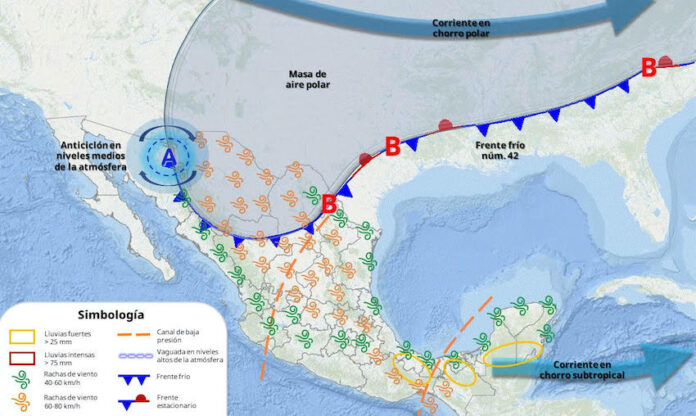 Se prevé que durante el fin de semana un *vaguada en altura* en combinación con afluencia de humedad proveniente del Golfo de California ocasione inestabilidad suficiente para la generación de algunas tormentas sobre gran parte del territorio estatal. Aunado a eso, rachas de viento fuertes y probabilidad de granizo.