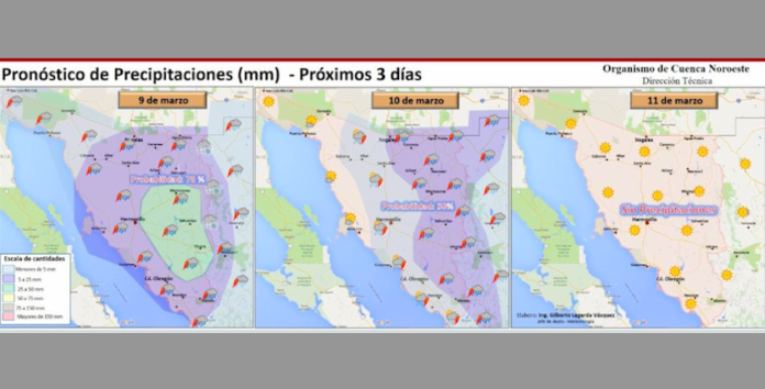 Se esperan además fuertes rachas de viento sobre el norte y oriente del estado de Sonora.