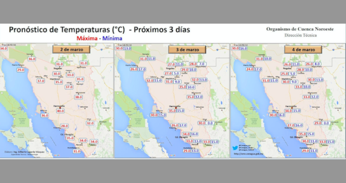 Hermosillo, Sonora.- La Coordinación Estatal de Protección Civil (CEPC), informa que se espera un ligero descenso de temperaturas esta semana en la entidad.
