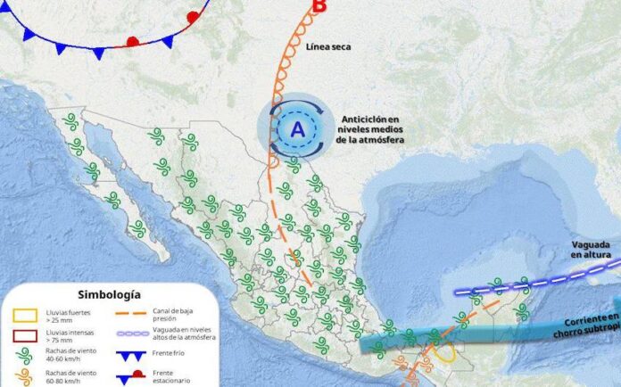 Se pronostica que durante el fin de semana un canal de baja presión en combinación con afluencia de humedad proveniente del Golfo de California ocasione inestabilidad suficiente para la generación de algunas tormentas sobre gran parte del territorio estatal. Aunado a eso, rachas de viento fuertes y probabilidad de granizo.