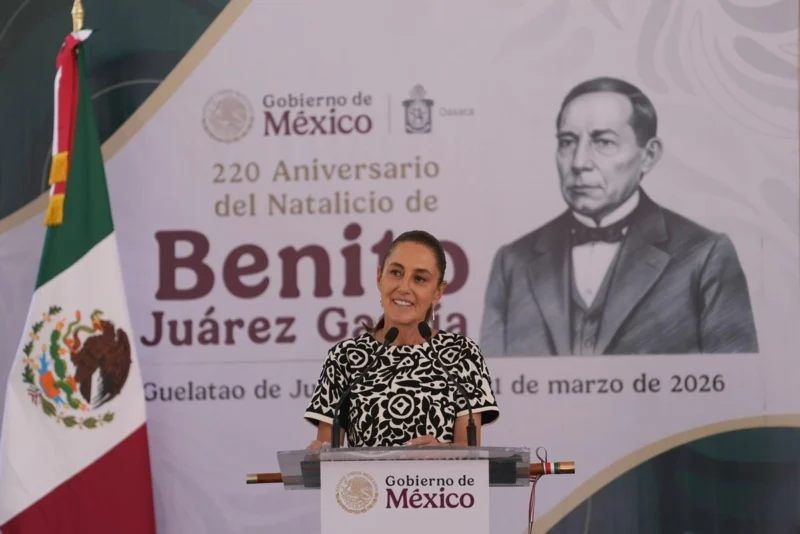 Guelatao de Juárez, Oax. Al conmemorar el 220 aniversario del natalicio de Benito Juárez, la presidenta, Claudia Sheinbaum, reivindicó la vigencia de su pensamiento y sus principios. “Juárez es no solo historia, es presente y guía, mientras haya pueblo, haya dignidad, seguirá viviendo”. Aseguró que “Juárez vive en la Cuarta Transformación”.