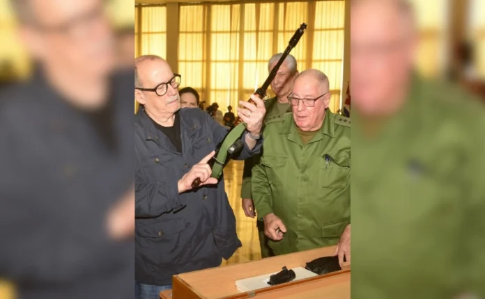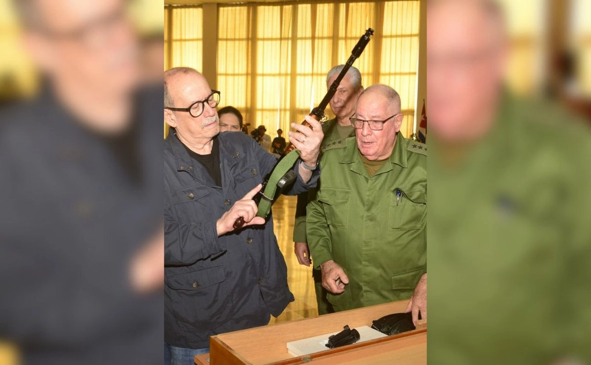 “En justo reconocimiento a su patriótica disposición de empuñar las armas para defender la patria, el ministerio de las Fuerzas Armadas Revolucionarias otorgó al cantautor Silvio Rodríguez una réplica del fusil AKM y un fusil AKM de combate”, informó el viernes la presidencia en su cuenta de X.