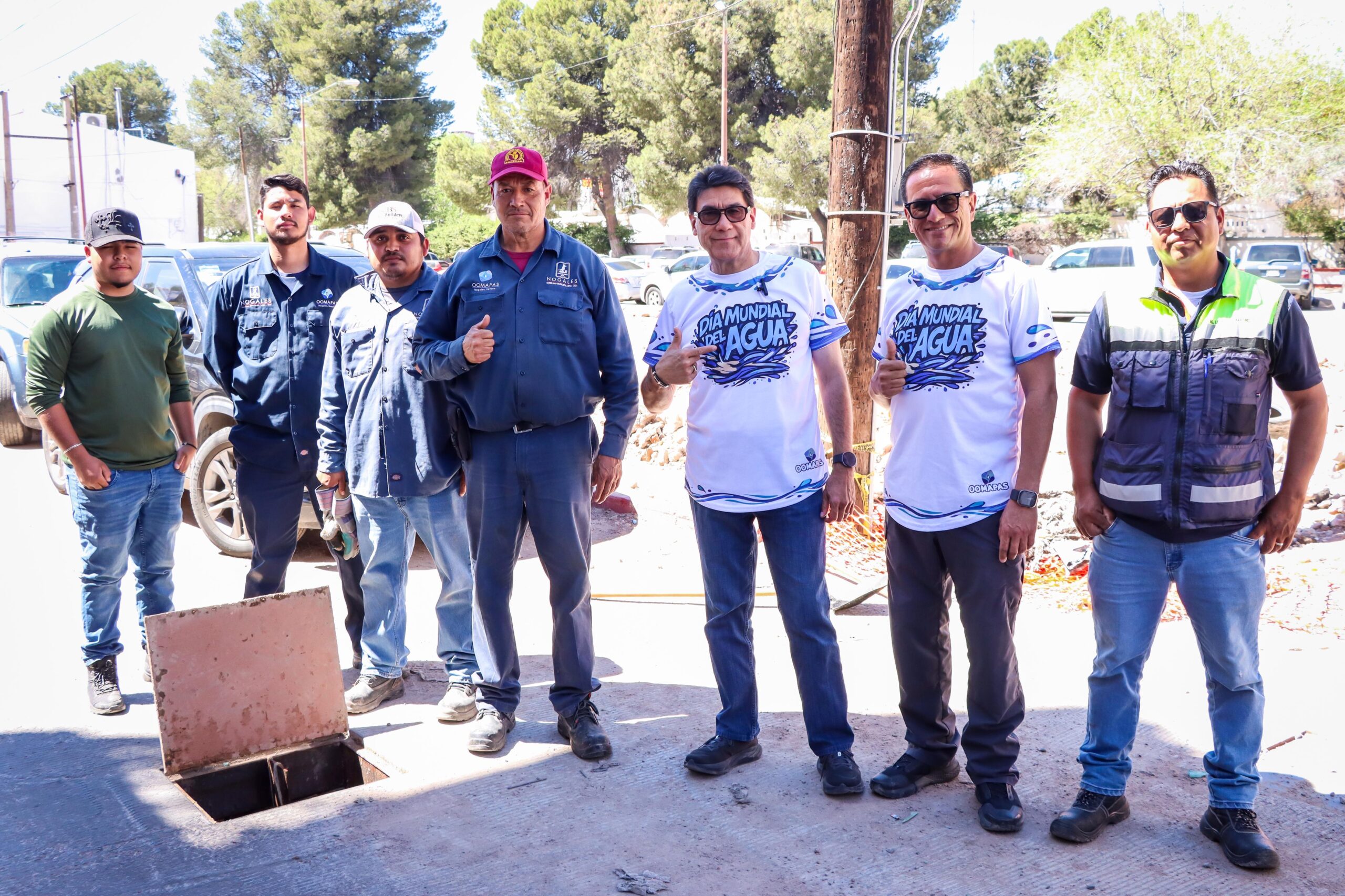 Nogales, Sonora, 22 de marzo de 2026.– En el marco del Día Mundial del Agua, el presidente municipal Juan Francisco Gim Nogales, acompañado por el director general de OOMAPAS, Leonardo Sandoval Mendoza, realizó un recorrido de supervisión por obras de alto impacto que fortalecen el abasto, el saneamiento y el cumplimiento de compromisos internacionales en materia de manejo del agua.