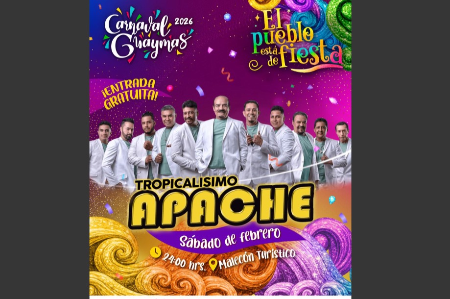 Todo está listo para la presentación en el Carnaval Guaymas 2026 “El pueblo está de fiesta” de Tropicalísimo Apache este sábado 14 en el Malecón Turístico a las 24:00 h ¡Todos a disfrutar esta gran presentación!